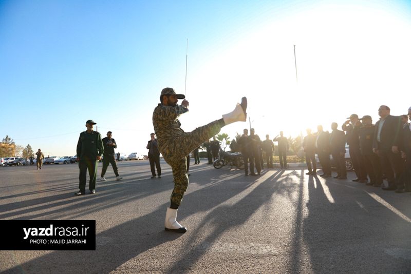 گشت رضویون بسیج یزد به مناسبت هفته بسیج در محل گلزار شهدای یزد اجتماعی کردند.