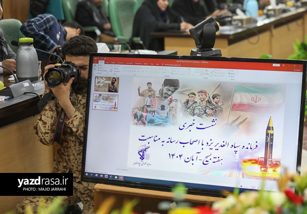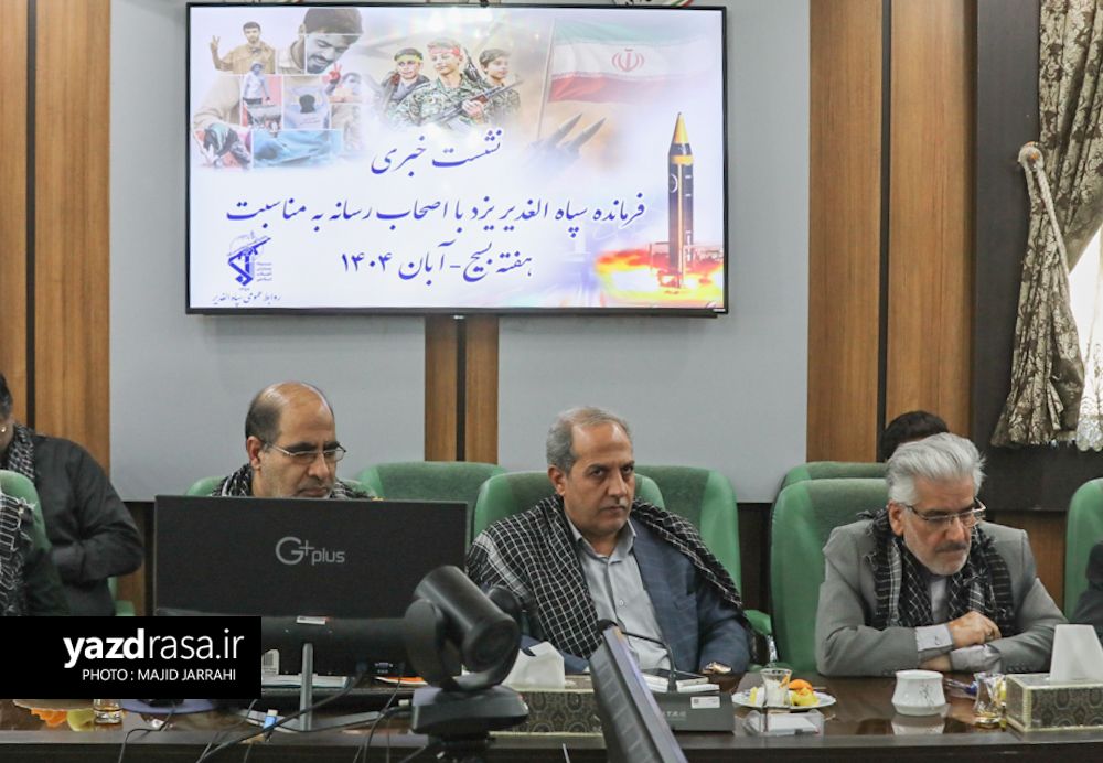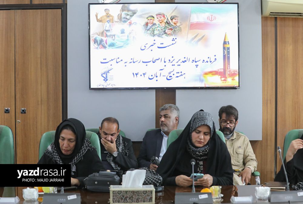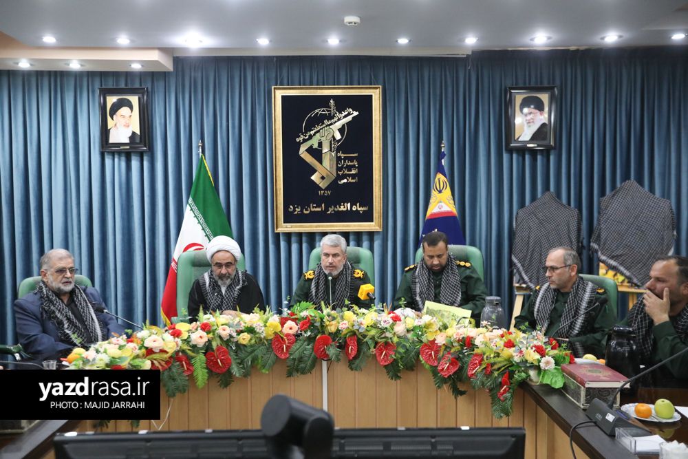 نشست خبری فرمانده سپاه الغدیر با اصحاب رسانه به مناسبت هفته بسیج صبح امروز چهارشنبه در سالن جلسات ستاد فرماندهی سپاه الغدیر یزد برگزار شد.