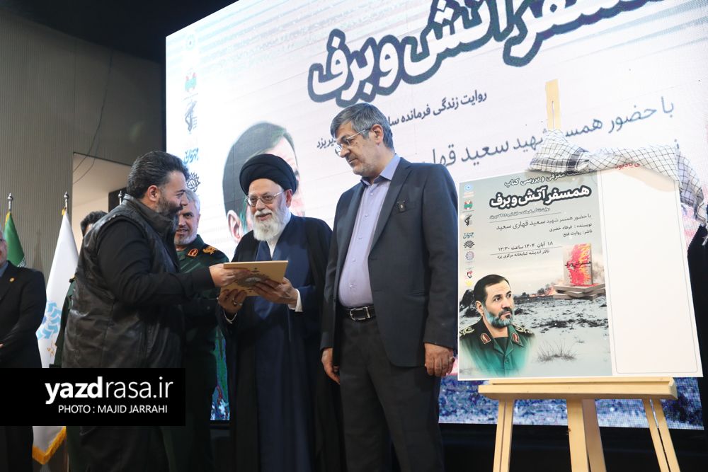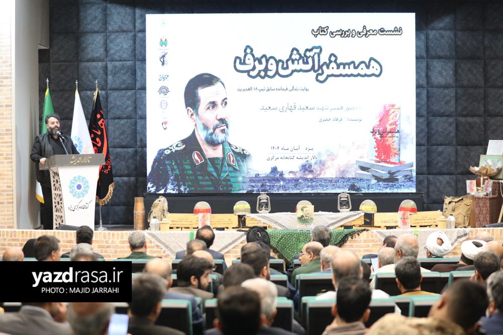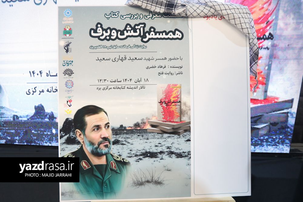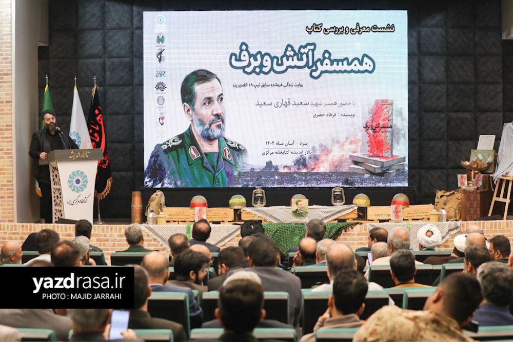 آئین رونمایی از کتاب همسفر آتش و برف که روایتگر بخشی از رشادتها و حیات معنوی شهید سعید قهاریسعید، فرمانده شهید تیپ الغدیر است در تالار اندیشه کتابخانه مرکزی یزد برگزار شد.